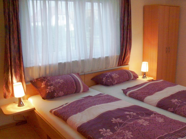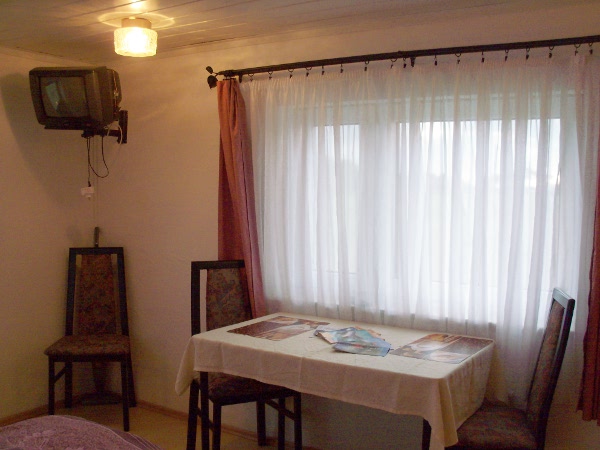 Die Laube besteht aus einem Raum in diesem befindet sich: ein Doppelbett, ein Kleiderschrank, 2 Nachttische mit Lampen, TV sowie ein Tisch mit Stühlen.